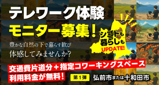 【開催終了しました】【弘前市&十和田市】青森県までの片道の交通費と指定コワーキングが無料!「おためしテレワーク体験モニター」