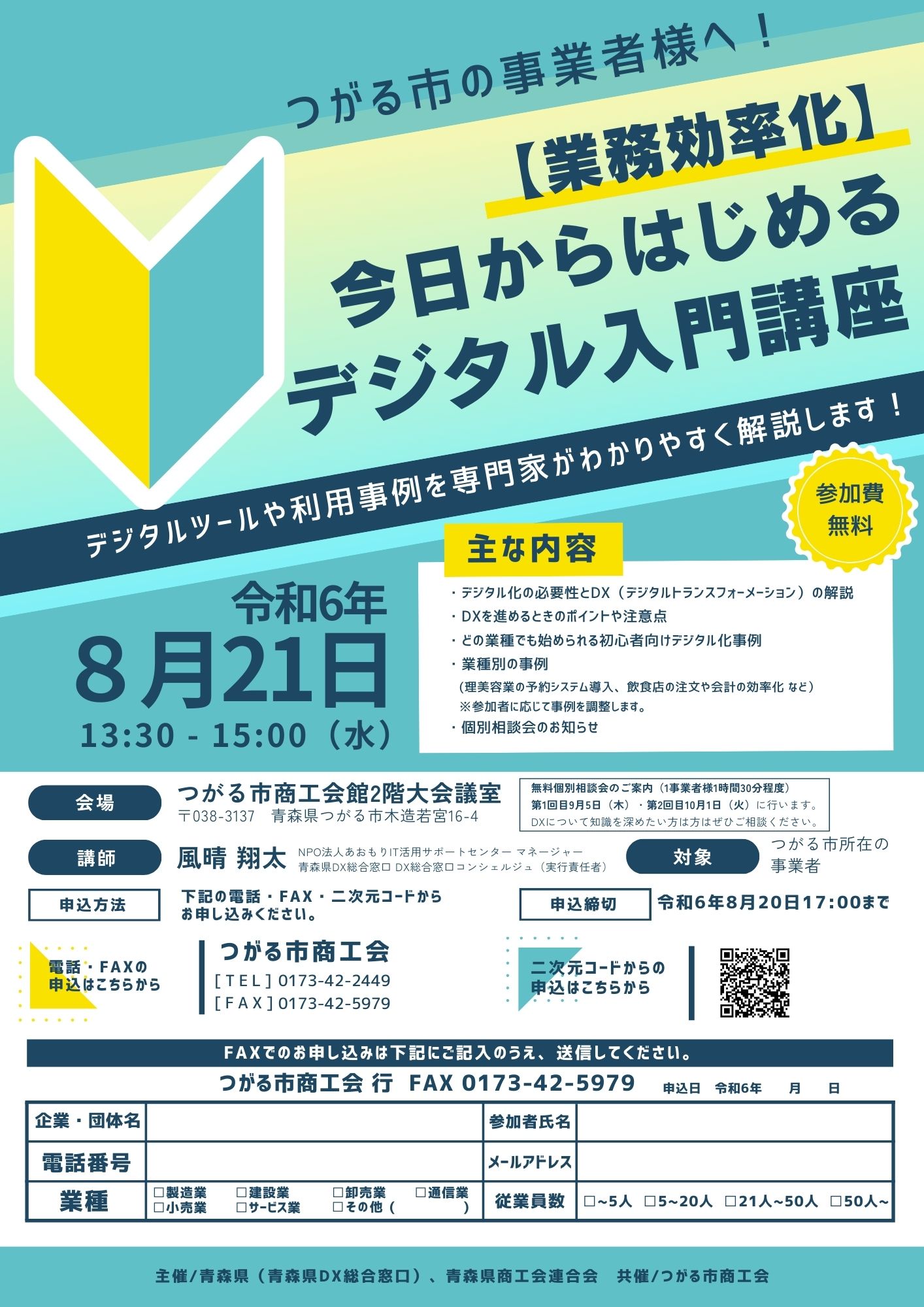 | 主催 | 青森県(青森県DX総合窓口)、青森県商工会連合会 共催/つがる市商工会 |