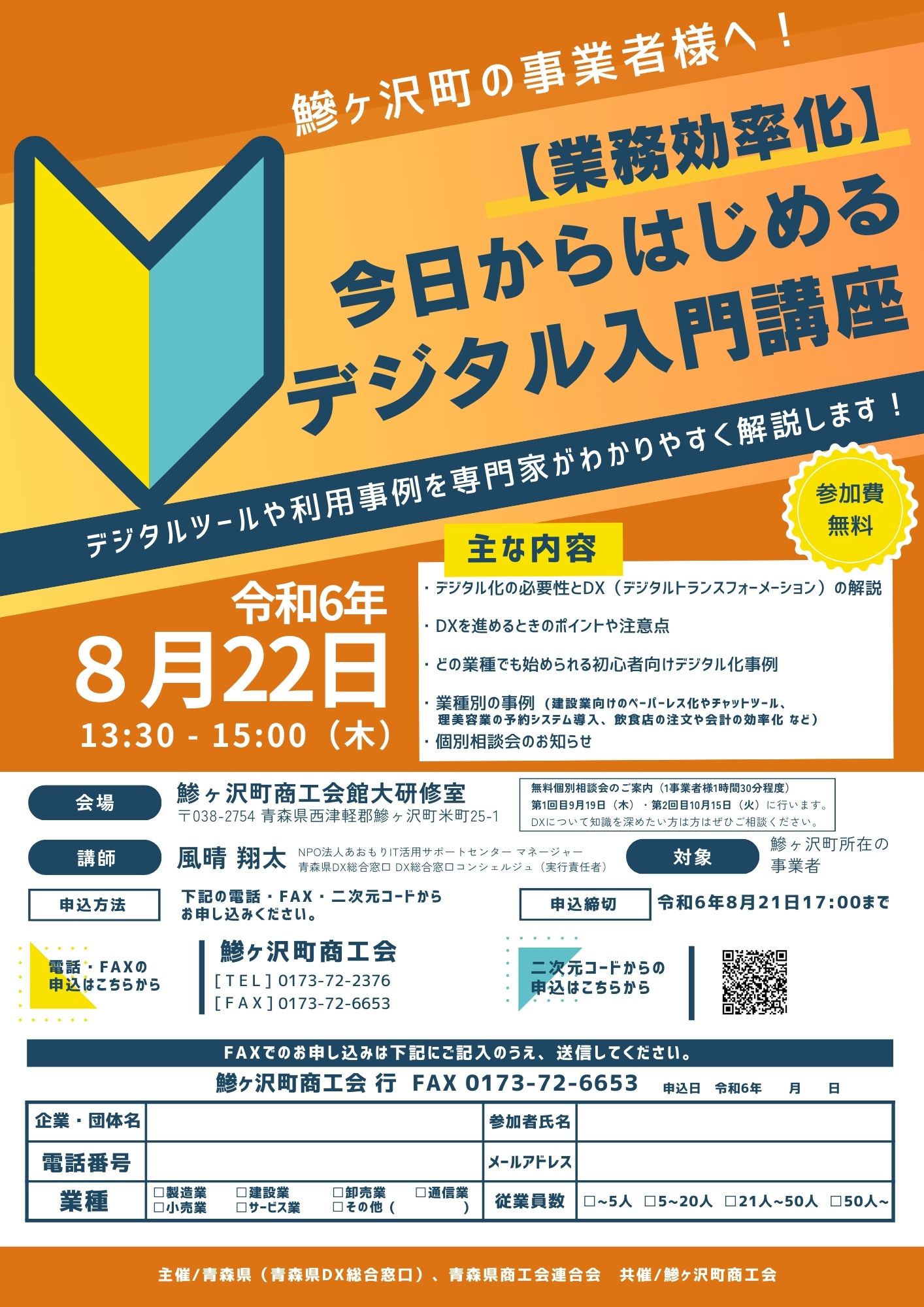| 主催 | 青森県(青森県DX総合窓口)、青森県商工会連合会 共催/鯵ヶ沢町商工会 |