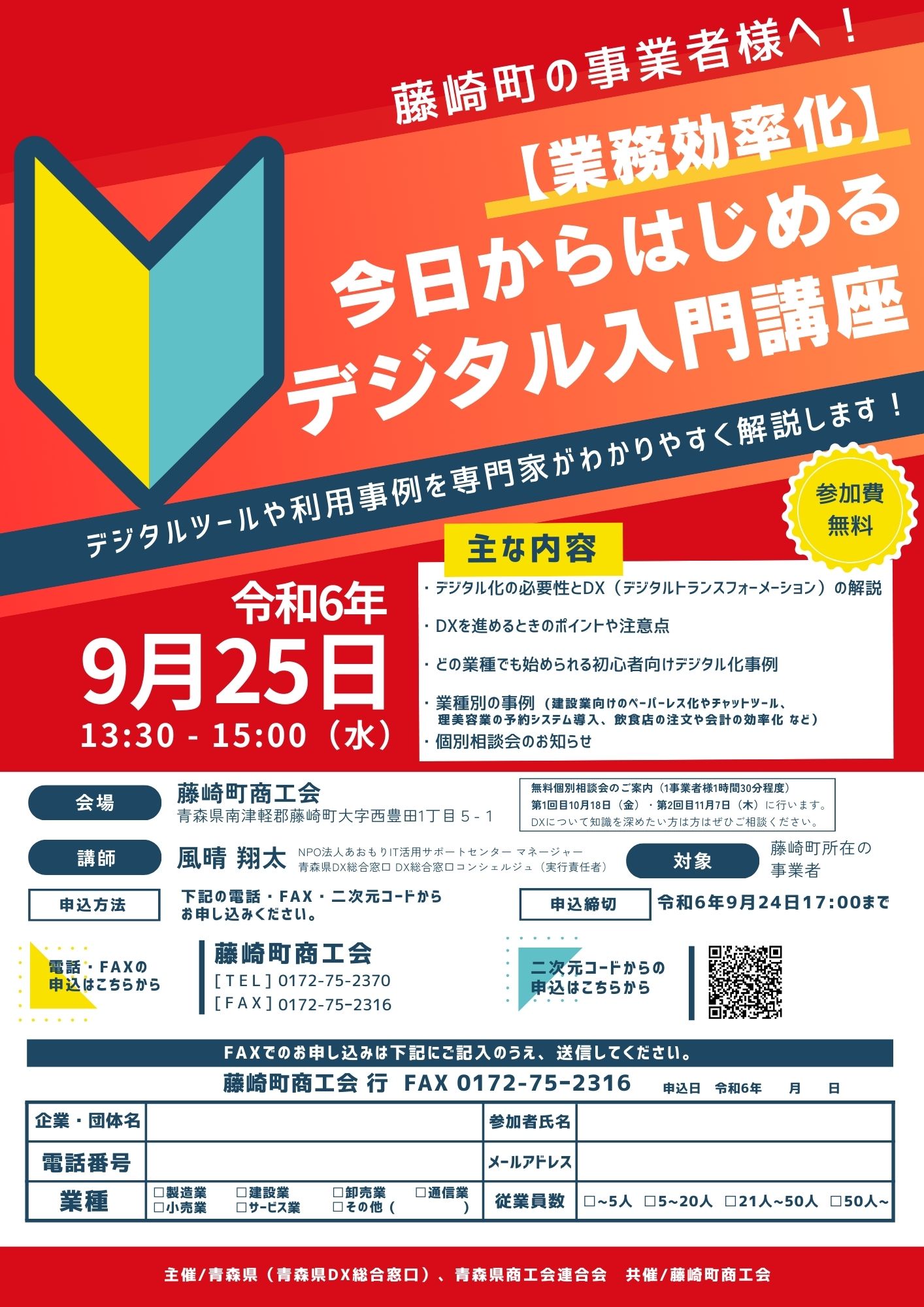 | 主催 | 青森県(青森県DX総合窓口)、青森県商工会連合会 共催/藤崎町商工会 |