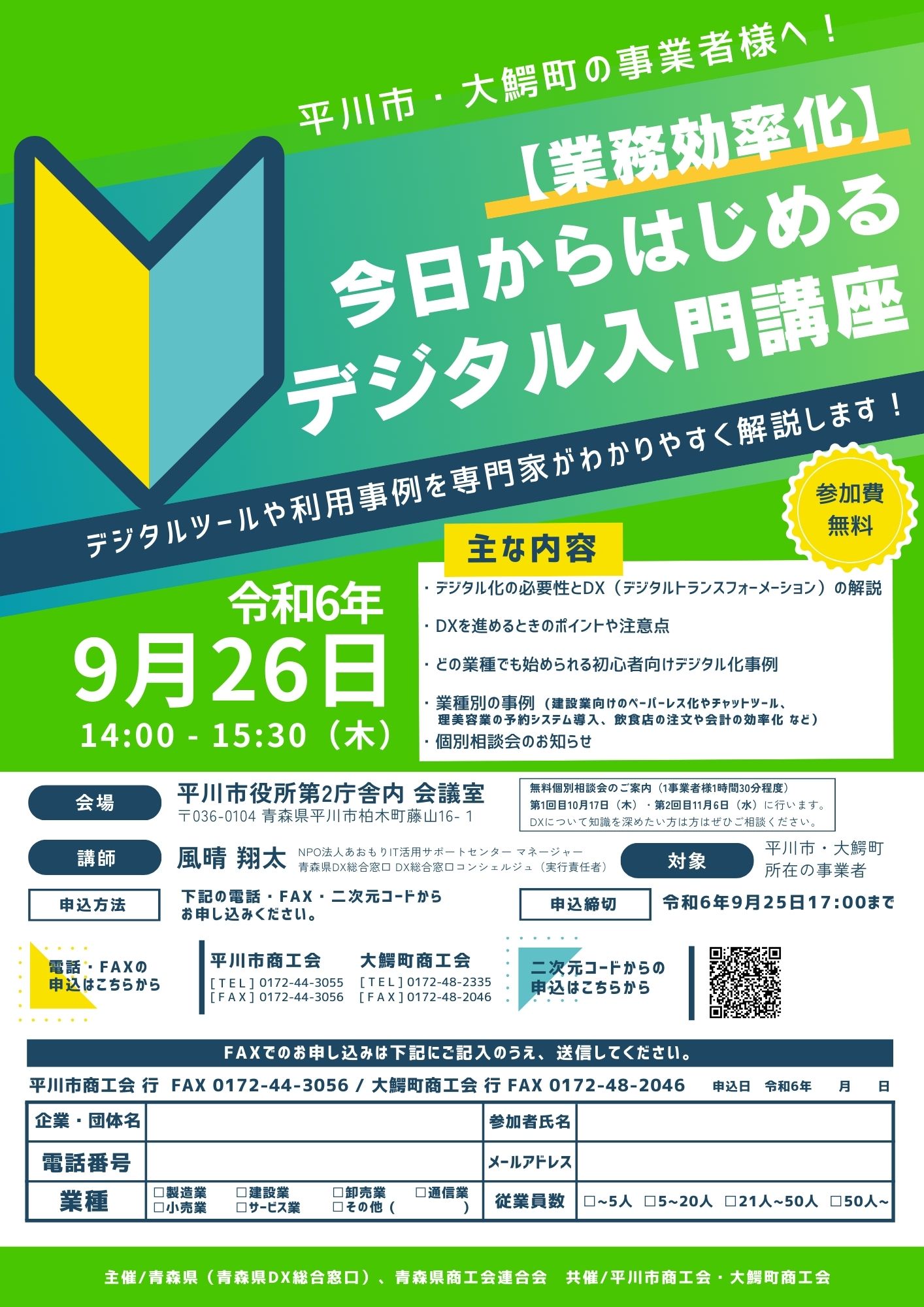 | 主催 | 青森県(青森県DX総合窓口)、青森県商工会連合会 共催/平川市商工会・大鰐町商工会 |