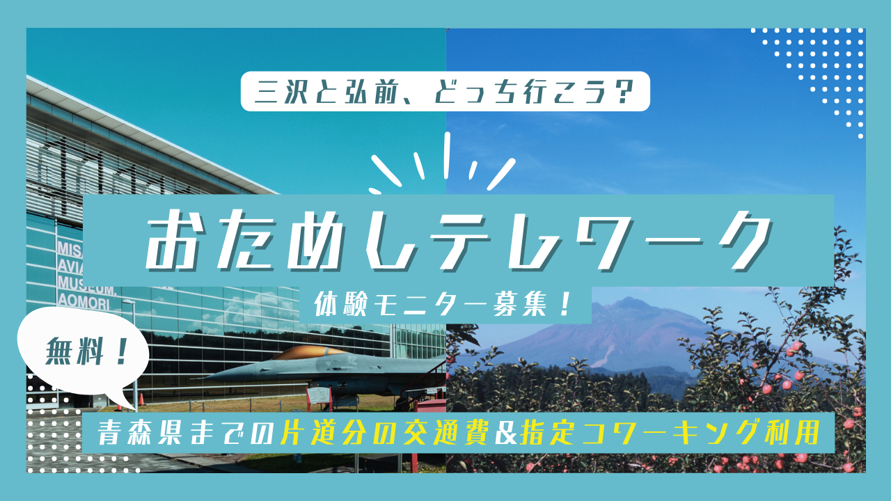 【募集終了しました】【三沢市&弘前市】青森県までの片道の交通費と指定コワーキングが無料!「おためしテレワーク体験モニター」