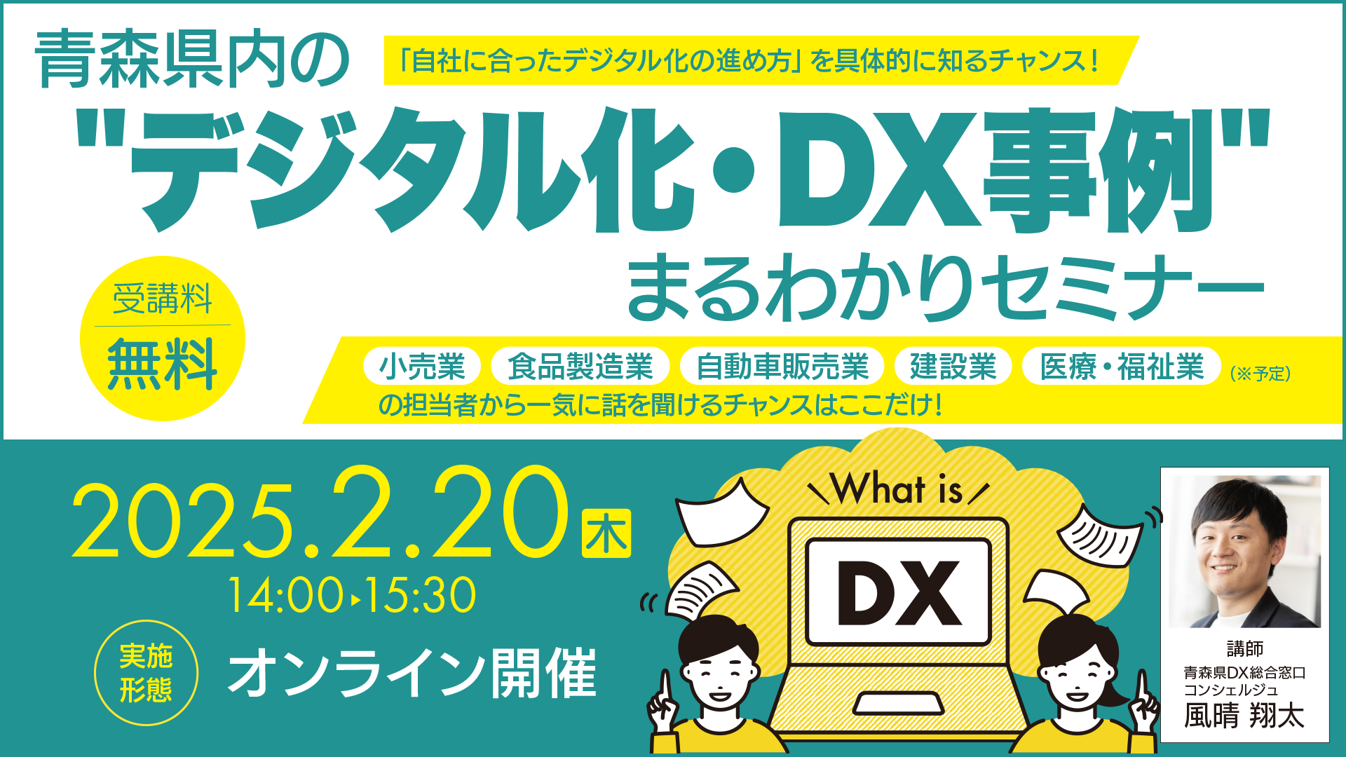 【開催終了しました】オンライン開催:セミナー「青森県内の”デジタル化・DX事例”まるわかりセミナー」2025年2月20日(木)
