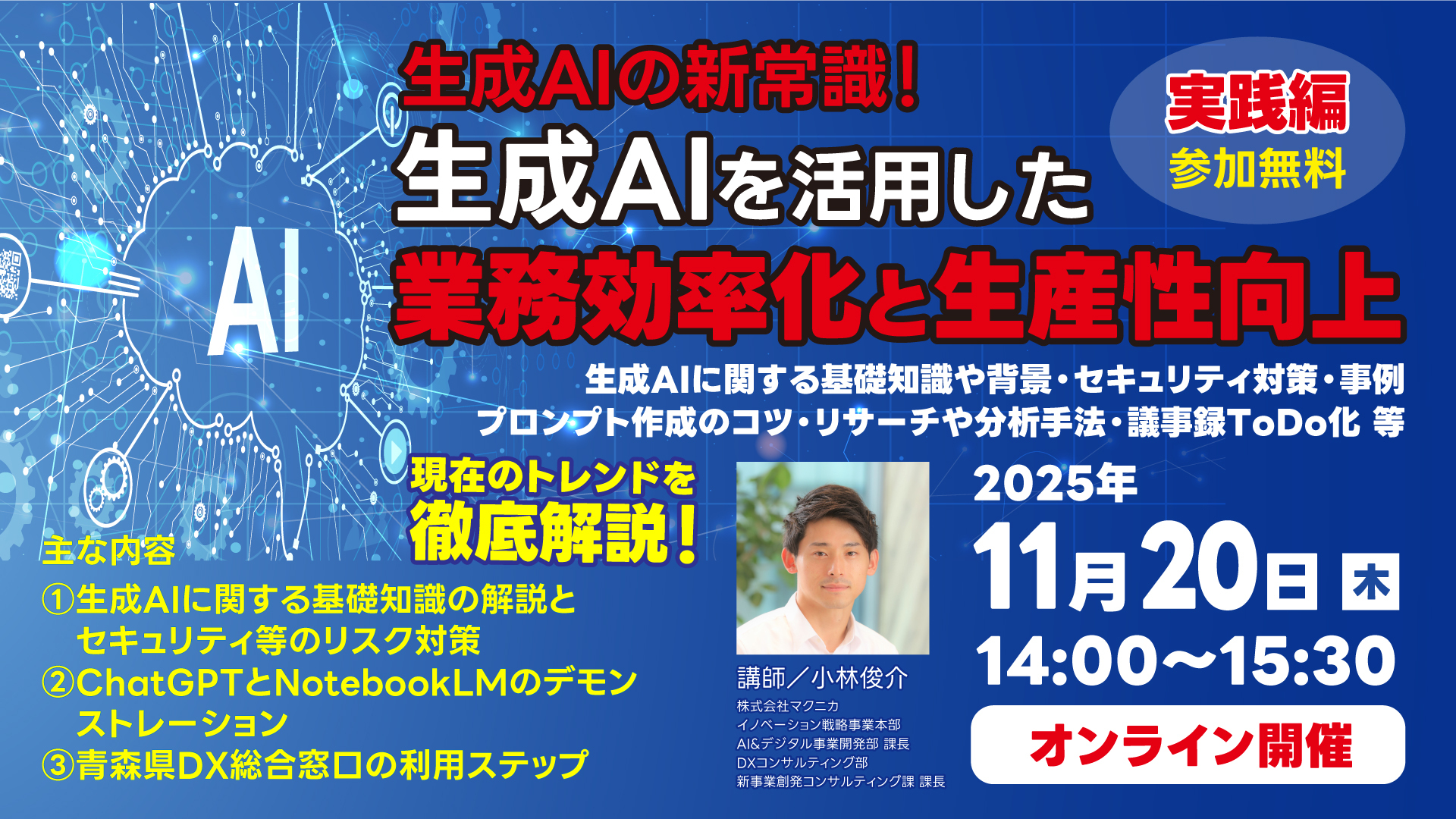 | 日時 | 2025年11月20日(木)14:00~15:30 |