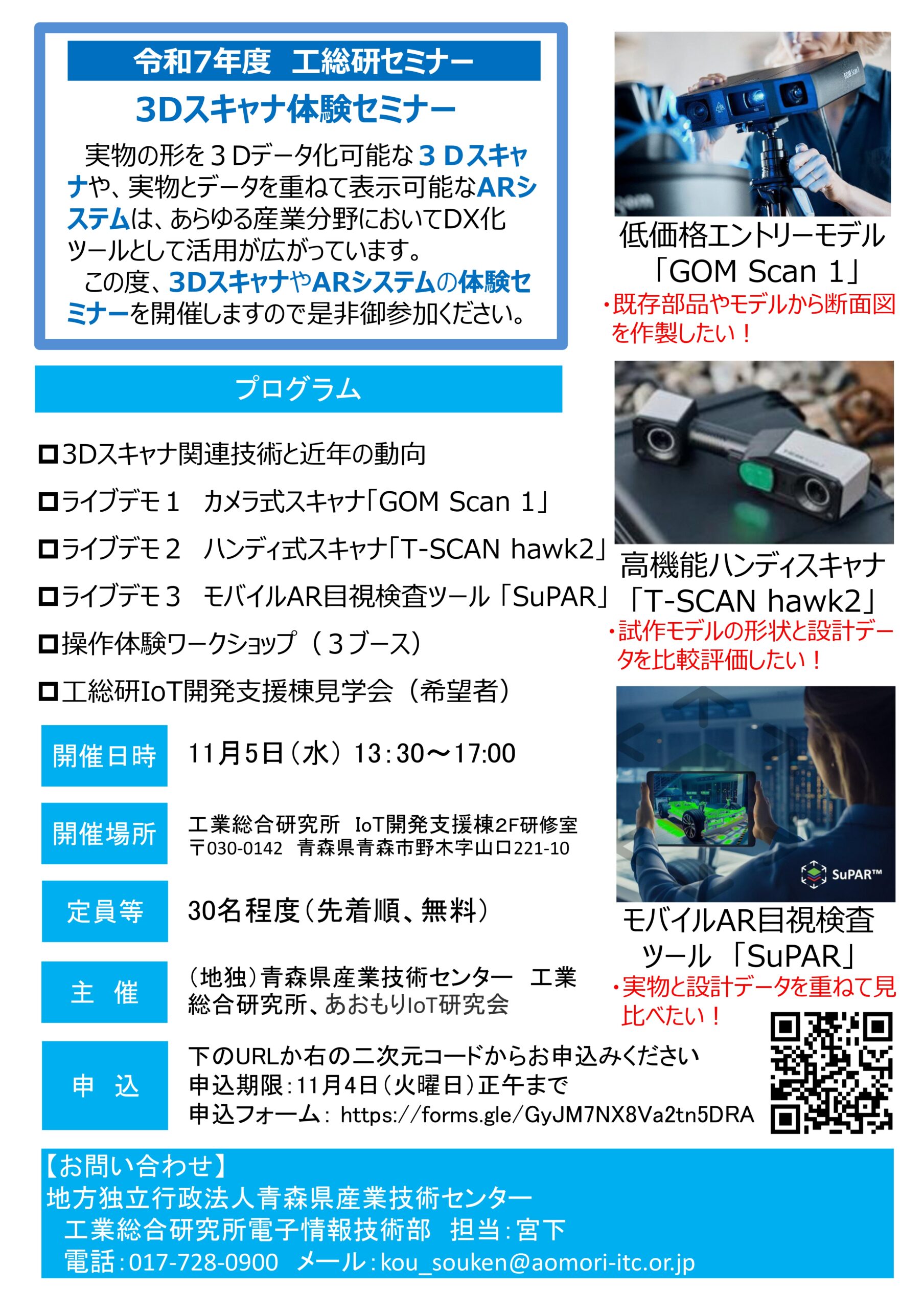 この度、工業総合研究所では、技術活用の一層の促進のため、実際に3Dスキャナを用いてスキ